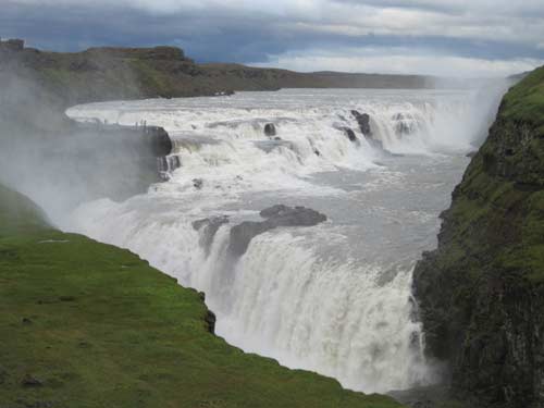 Gullfoss waterfall in Iceland looks as if it flows into the centre of the Earth.